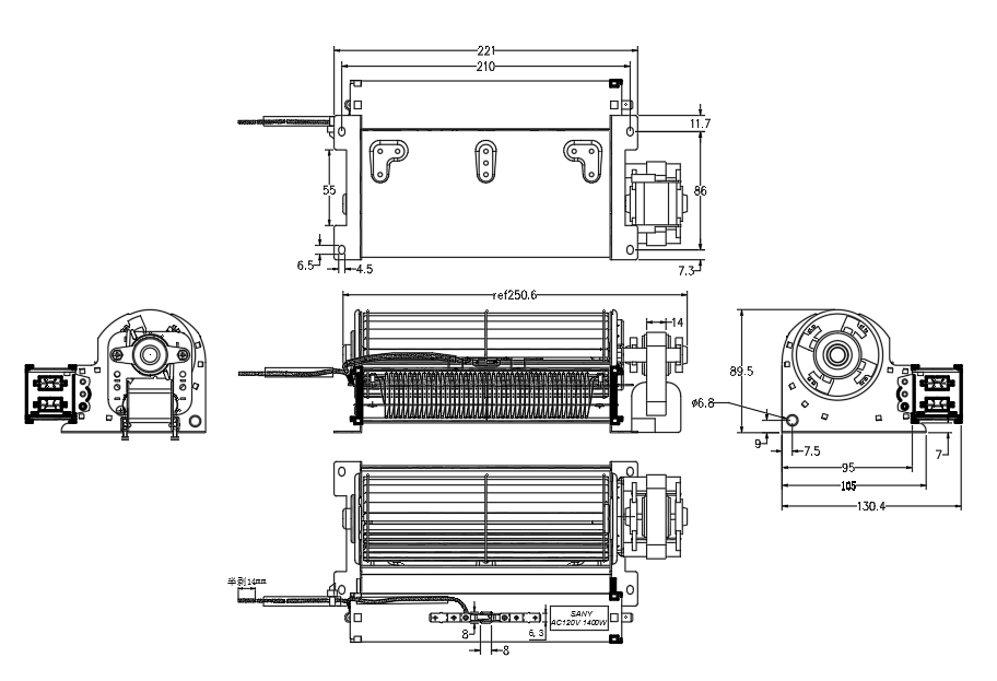 風(fēng)輪尺寸:60*178mm,60是風(fēng)輪直徑,葉片長(cháng)度是178mm,單相罩極異步電機,電壓120V /60Hz或220-240V/50Hz,額定轉速1000-1800rpm,風(fēng)速2.0-4.5M/S